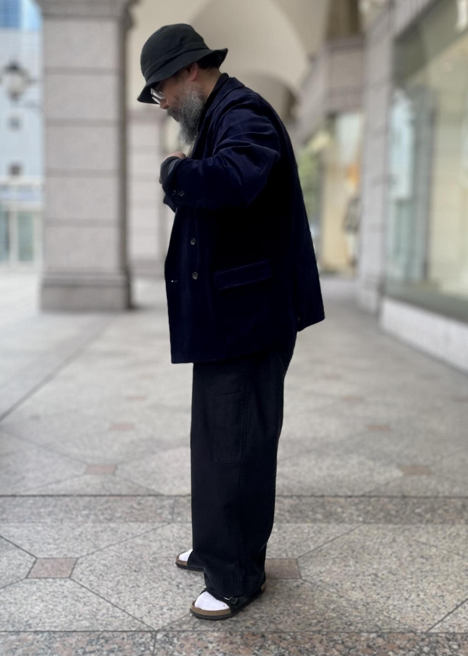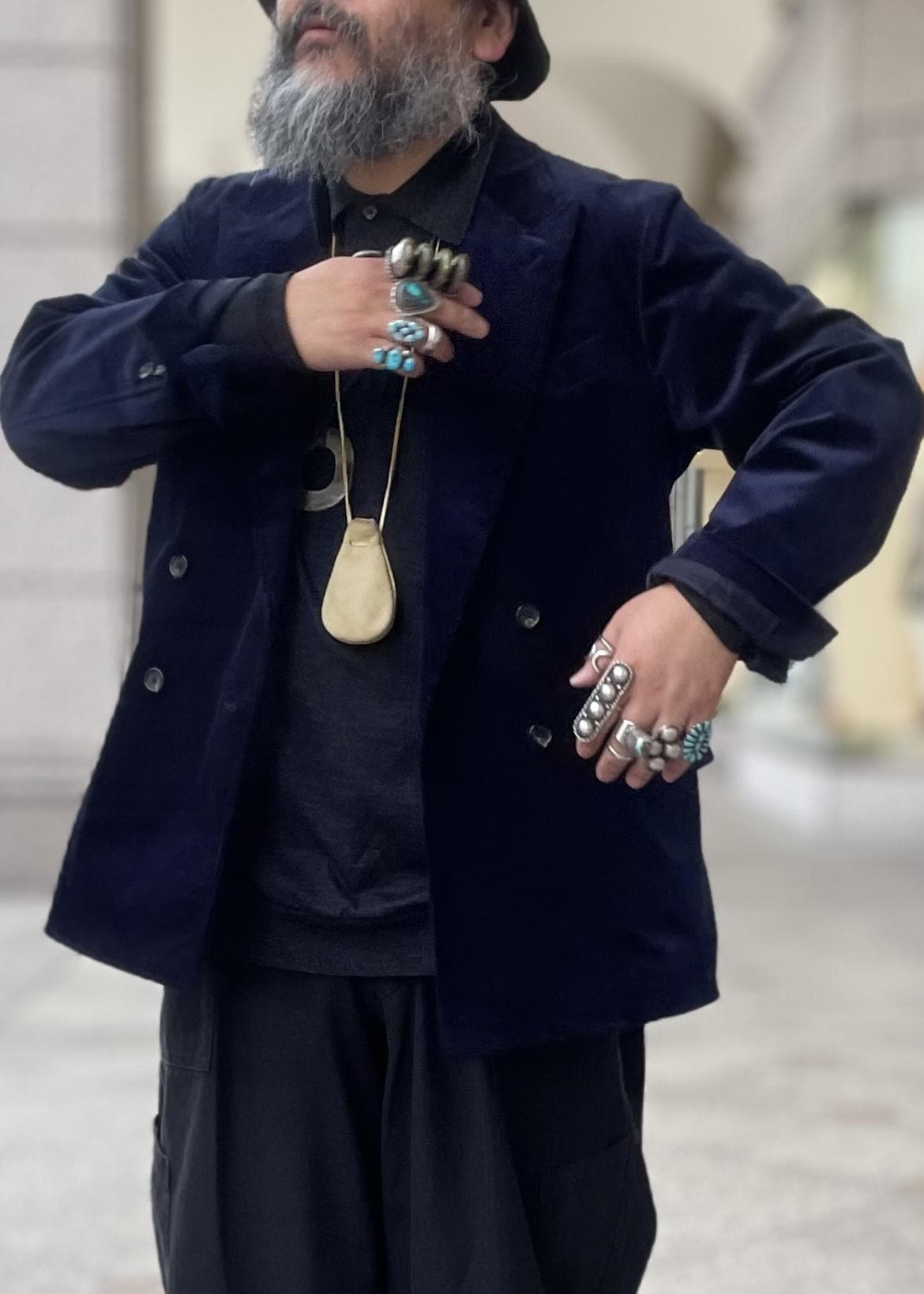 WILD LIFE TAILOR【WILD LIFE TAILOR】CORDUROY DOUBLE BREASTED JACKETネイビー / L¥68,200レビュー生地は中太畝のコーデュロイで見た目にはしっかりとした存在感がありますが、実際に着てみるとストレッチが効いているので動きやすく、適度なハリがあるのでシルエットもきれいに出ます。