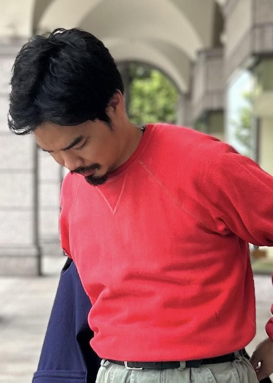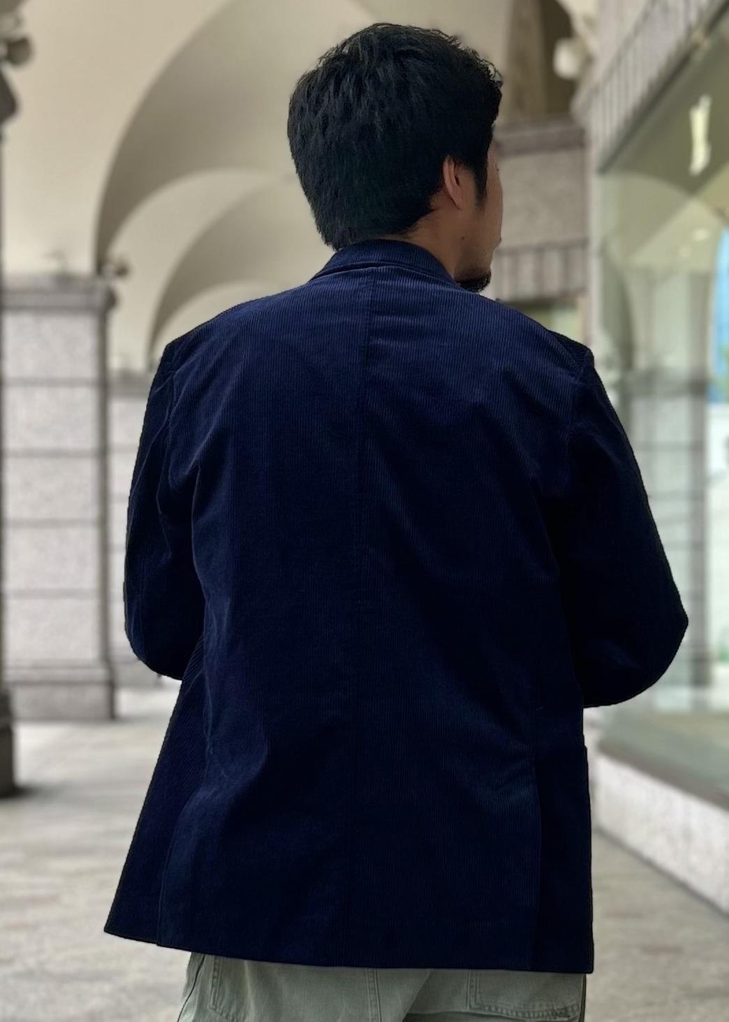 インパクトのあるスウェットを引き立ててくれるコーデュロイジャケットがいい味を出してくれているなと。
