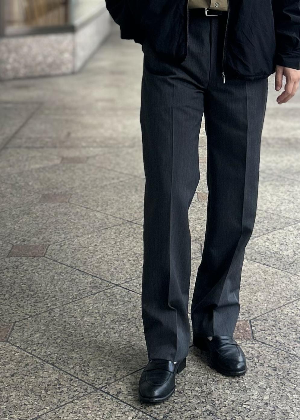 腰回りはややスッキリと、ワタリから裾口にかけては程良い太さをキープしてくれるストレートシルエットです。