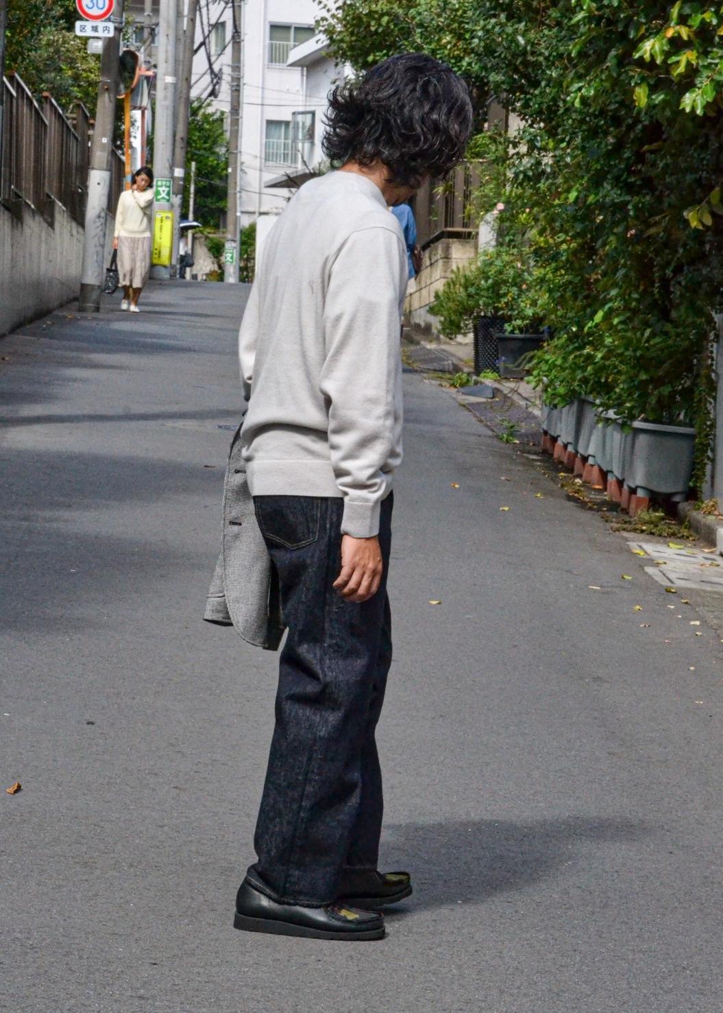 いつものジーンズをちょっとだけ綺麗に見せたい、そんなイメージでスタイリングしました。