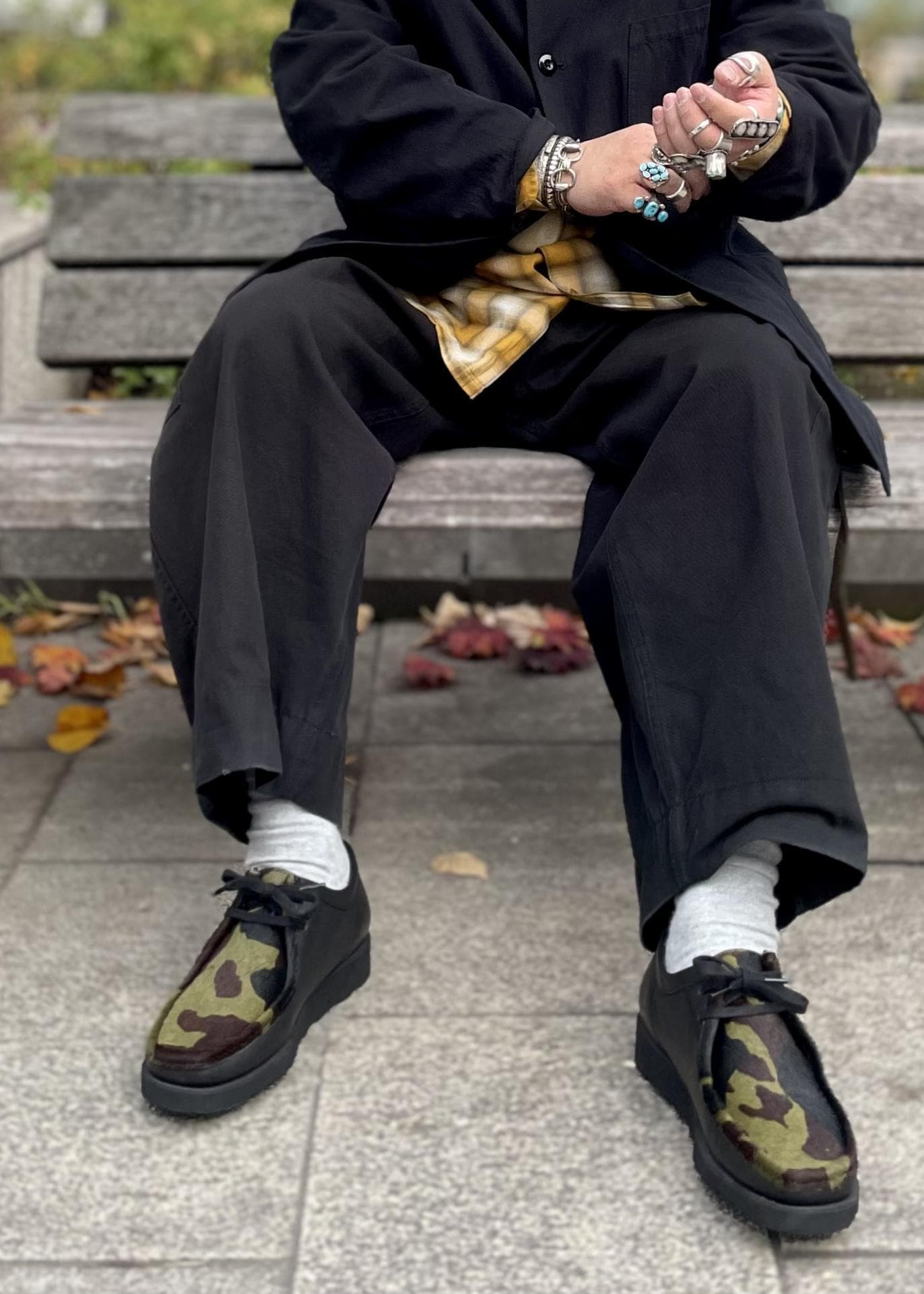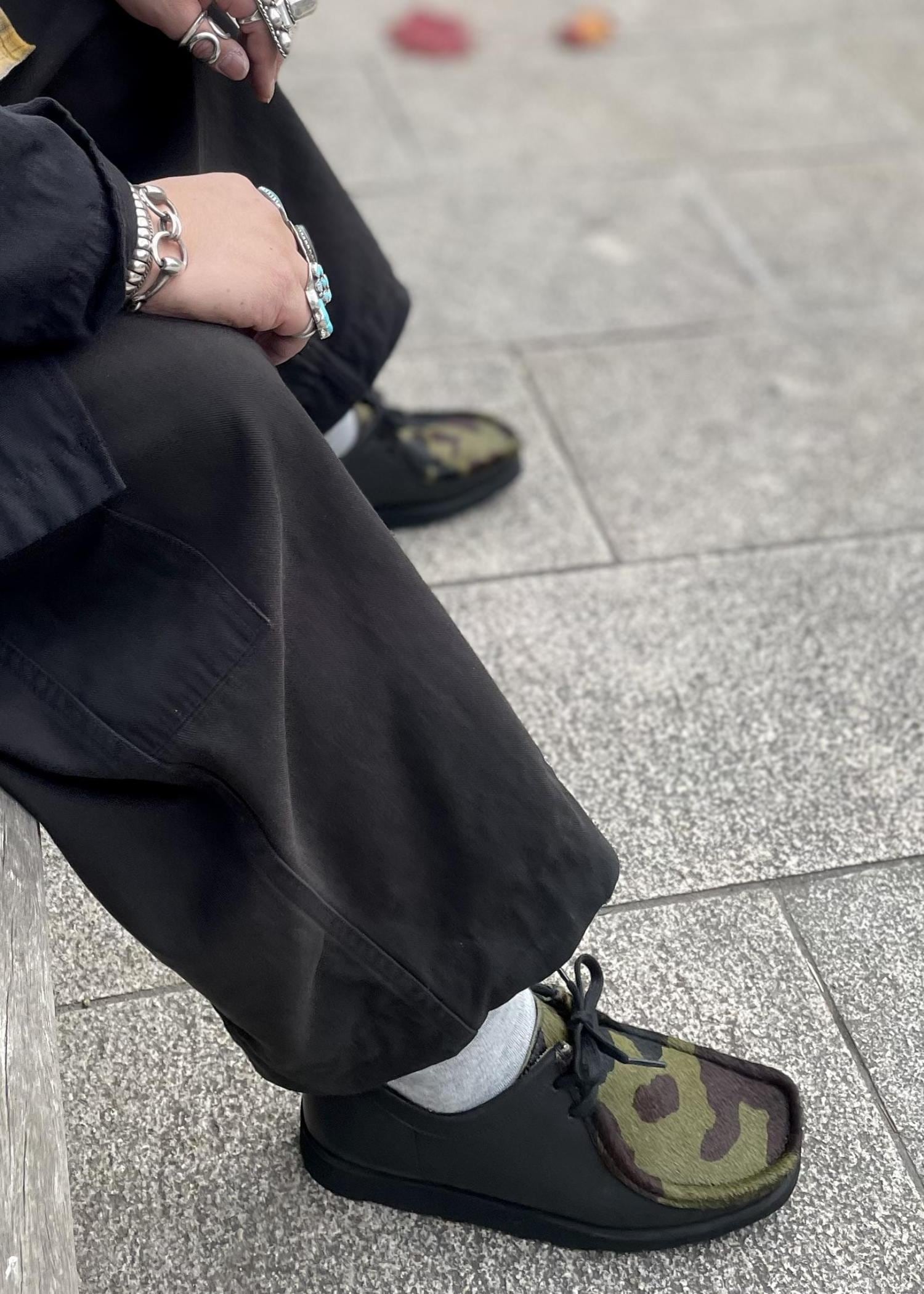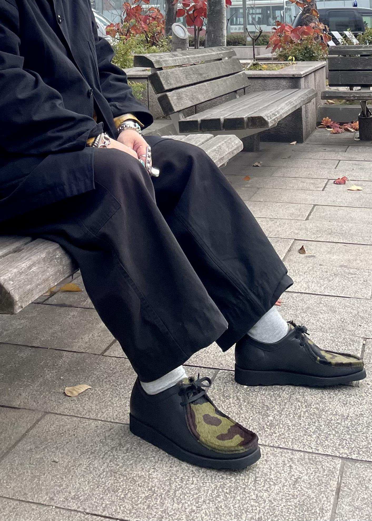 異素材のコントラストが生み出す存在感と、職人技が際立つ一足です。