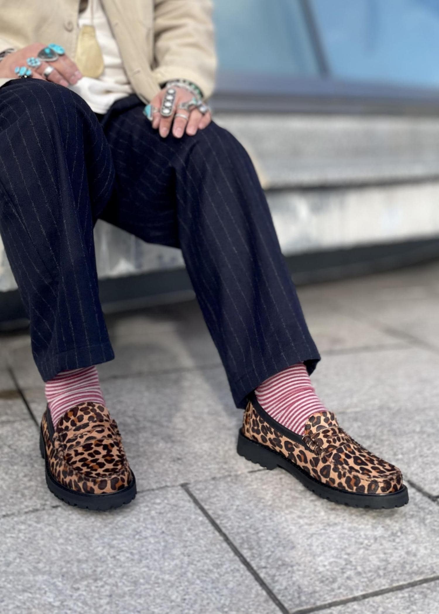 Padmore & Barnes のレオパード柄ローファー