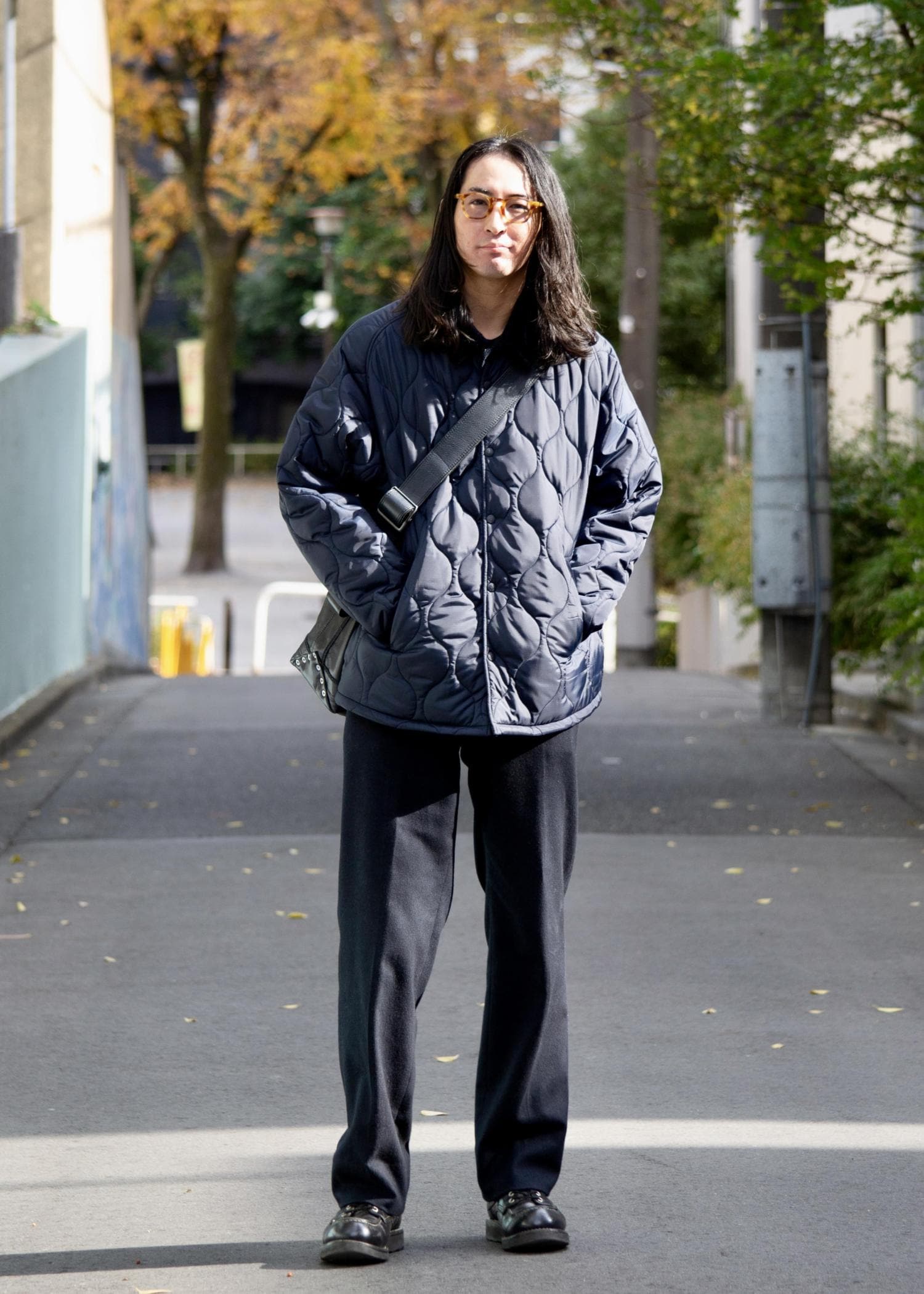 寒々しい雰囲気にならないように、同じくHEUGNのタートルネックニットを合わせてウォーム感を演出しました。