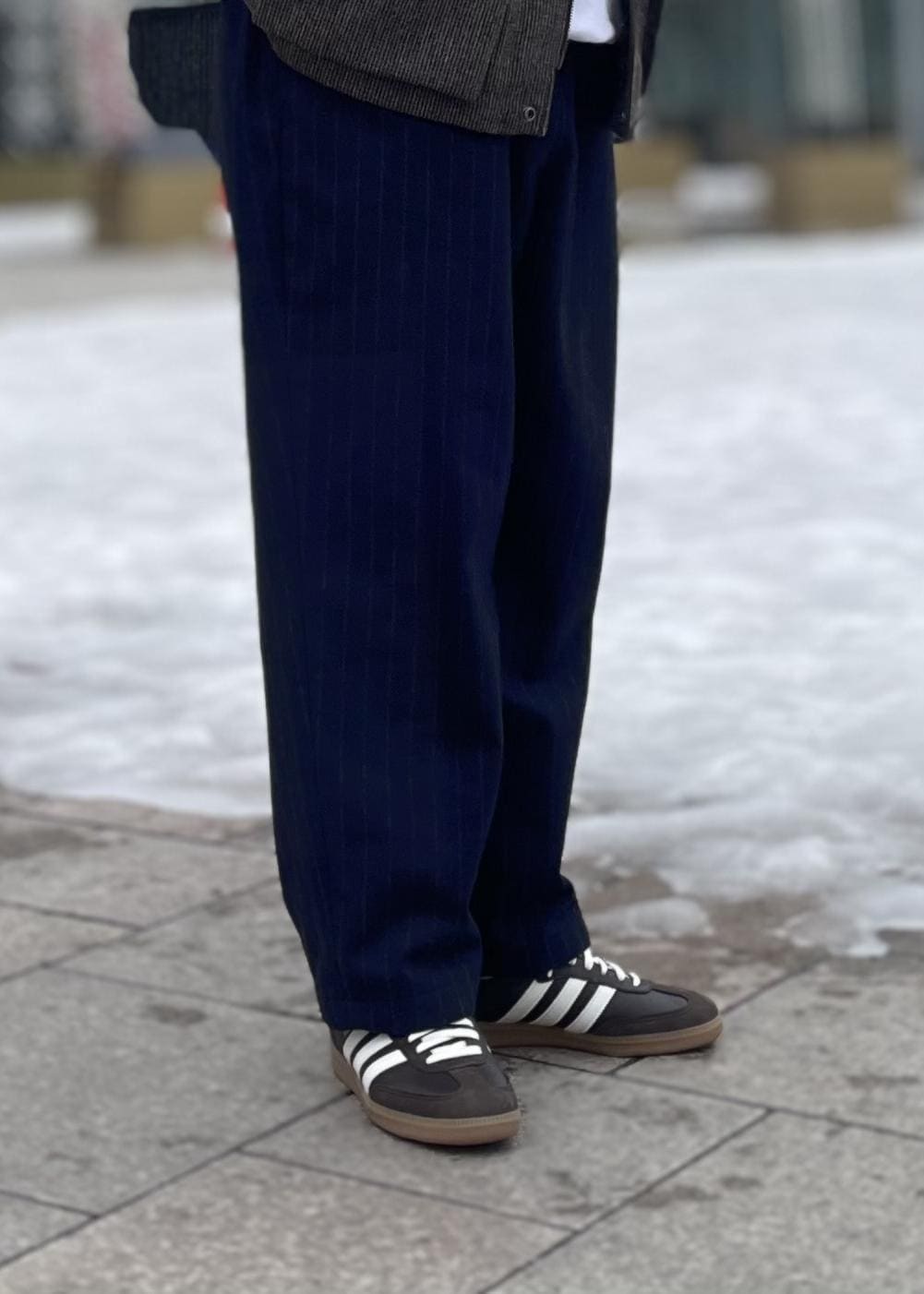 WILD LIFE TAILOR【HEUGN/ユーゲン】Cooper Wide Stripe PTネイビー / 4¥60,500レビューシルエットの太さを演出したかったのでサイズ4を着用。