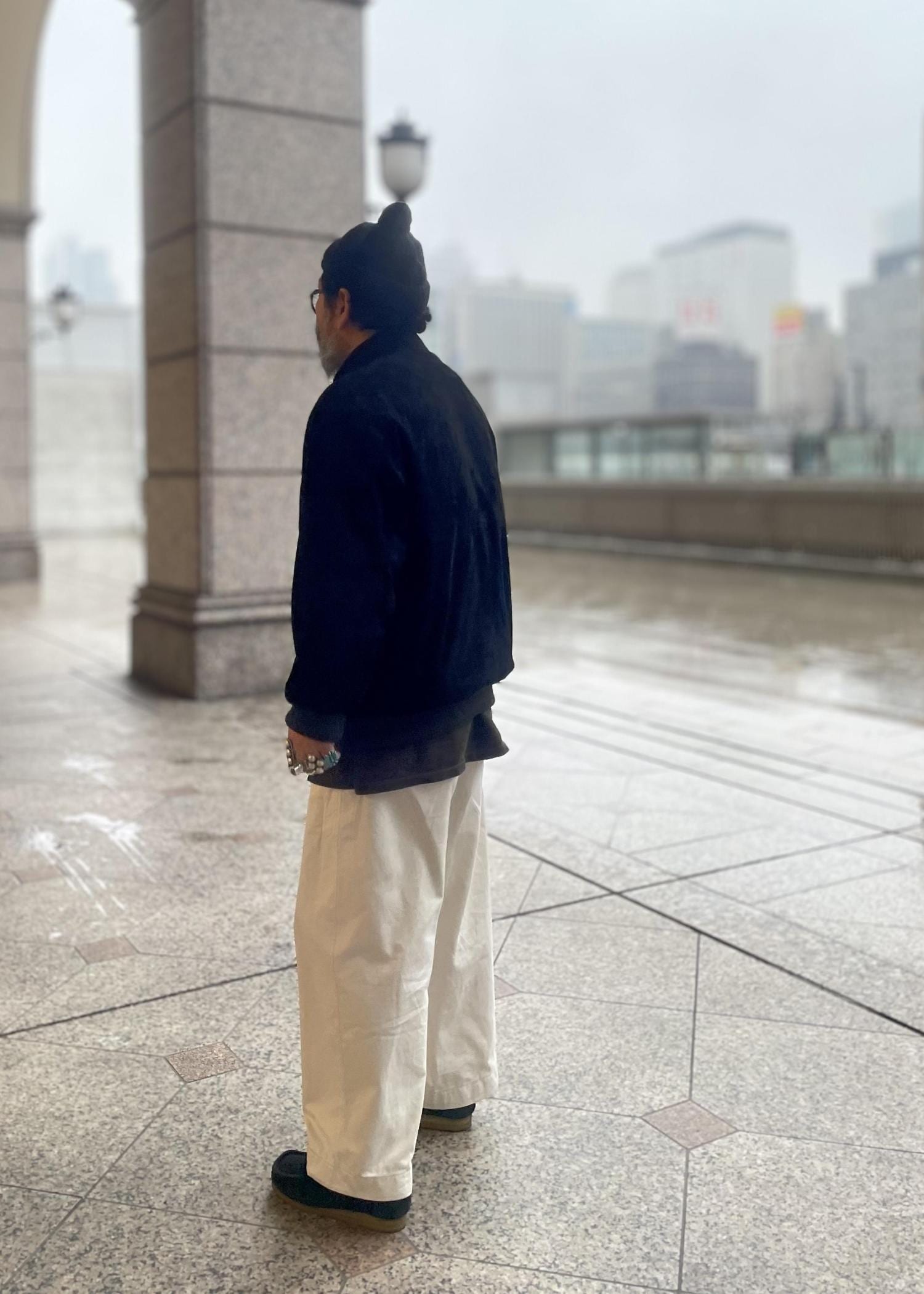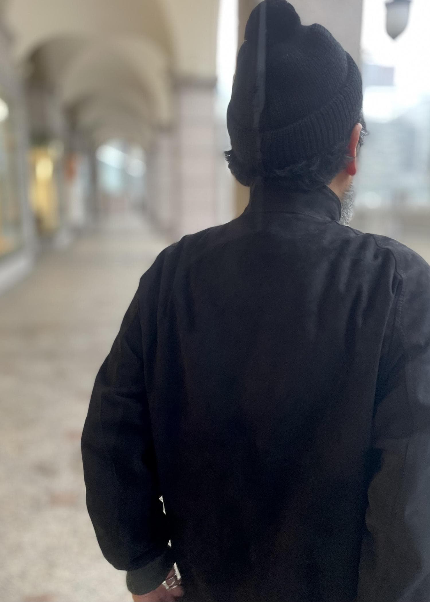 名もなきヴィンテージのレザーブルゾンをデザインベースとし、アルデンヌらしいエレガントなシープスキンを使用、控えめなデザインの中にのある男性像は、まさにワイルドライフテーラーらしいイメージに仕上がりました。