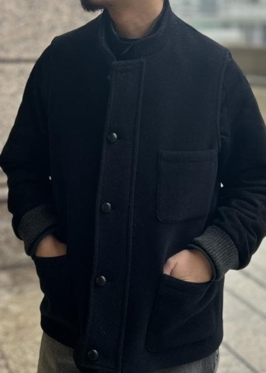 今シーズンはウール100%の肉厚な生地を用いたブラックベストをセレクトしております。