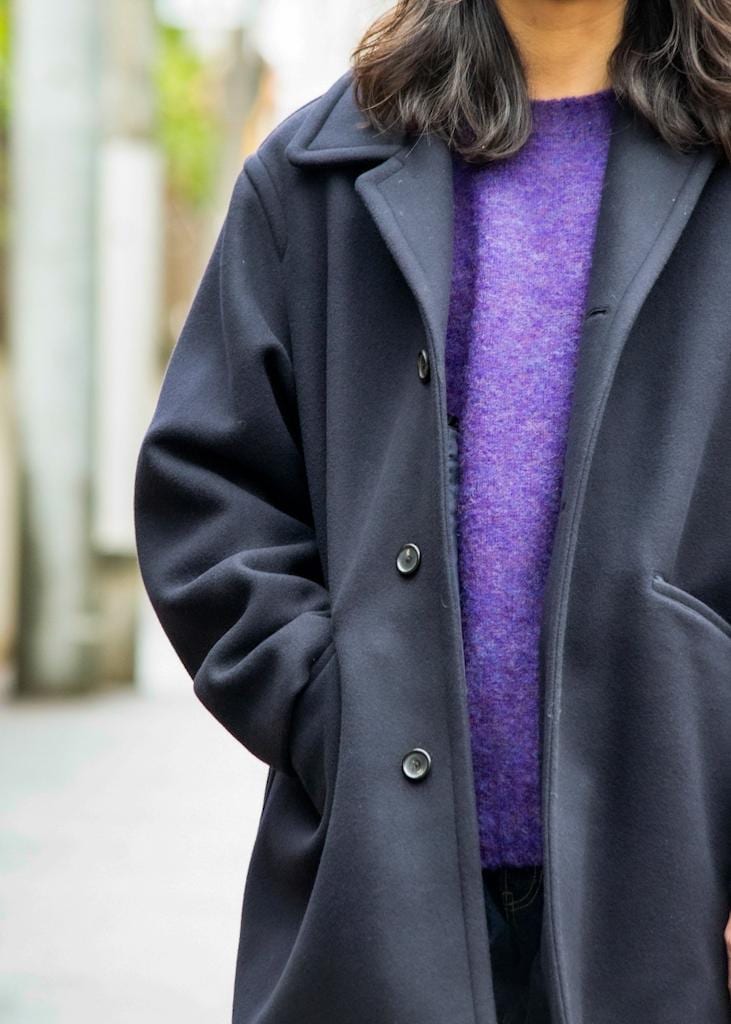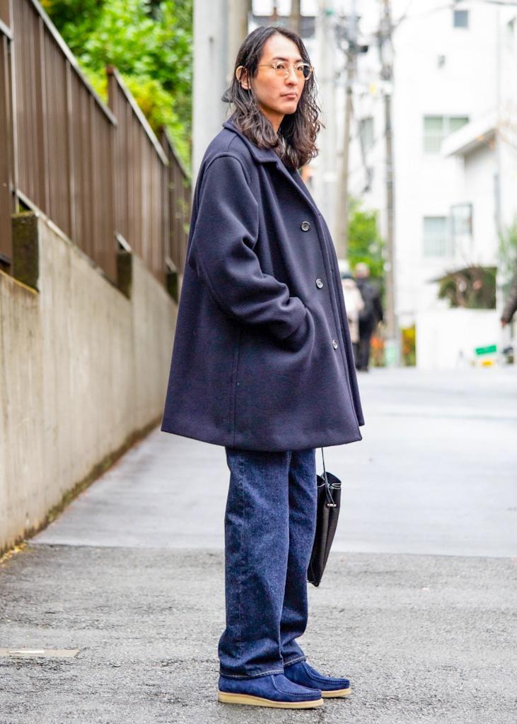 シェットランド系のニットにメルトン生地のコートで寒い日でも暖かく。