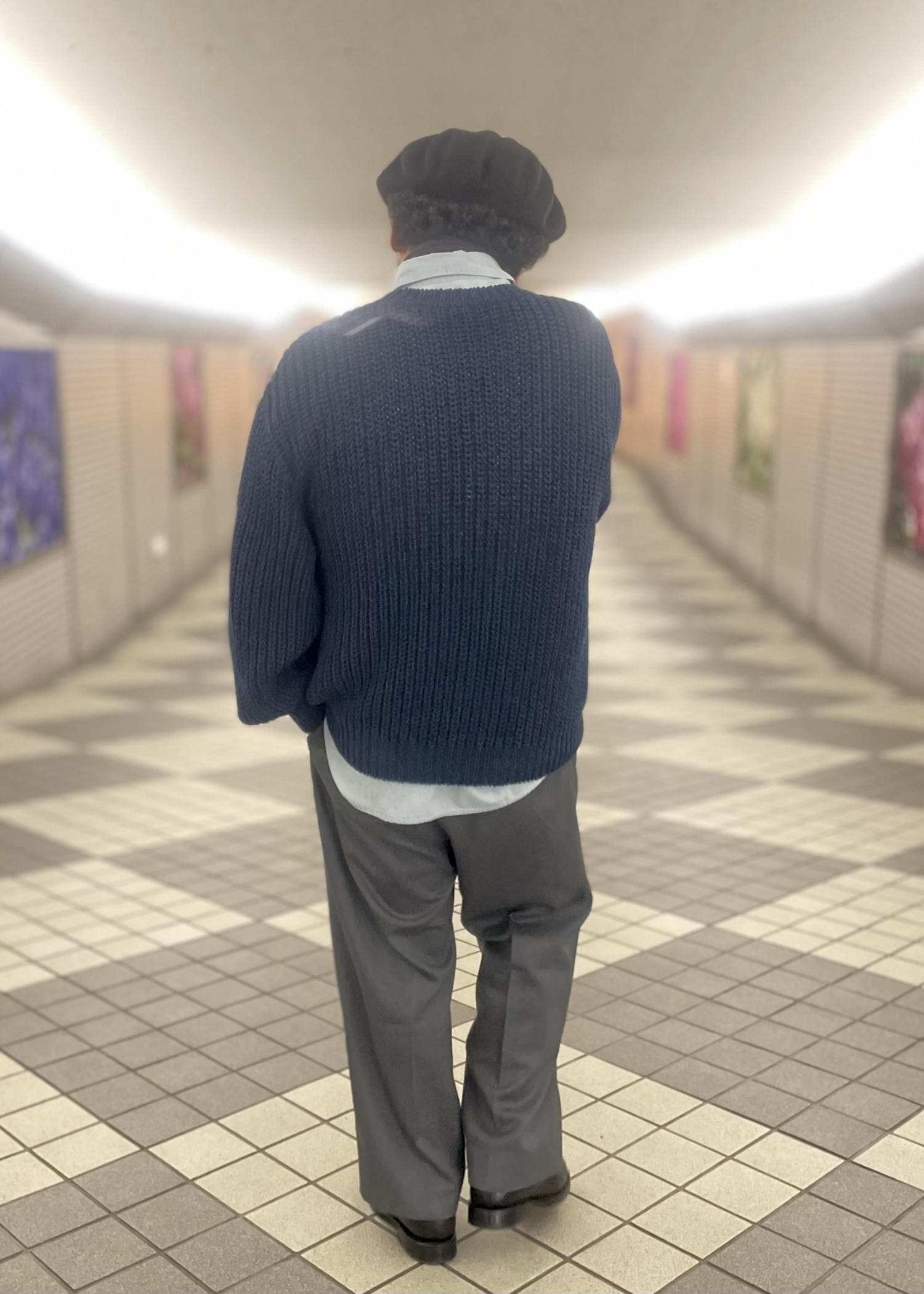 肩の仕様はラグランスリーブからセットインスリーブへ変更。ニット特有の柔らかさはそのままに、輪郭のあるシルエットに仕上げました。ラフすぎず、どこか品のある佇まいも魅力です。
