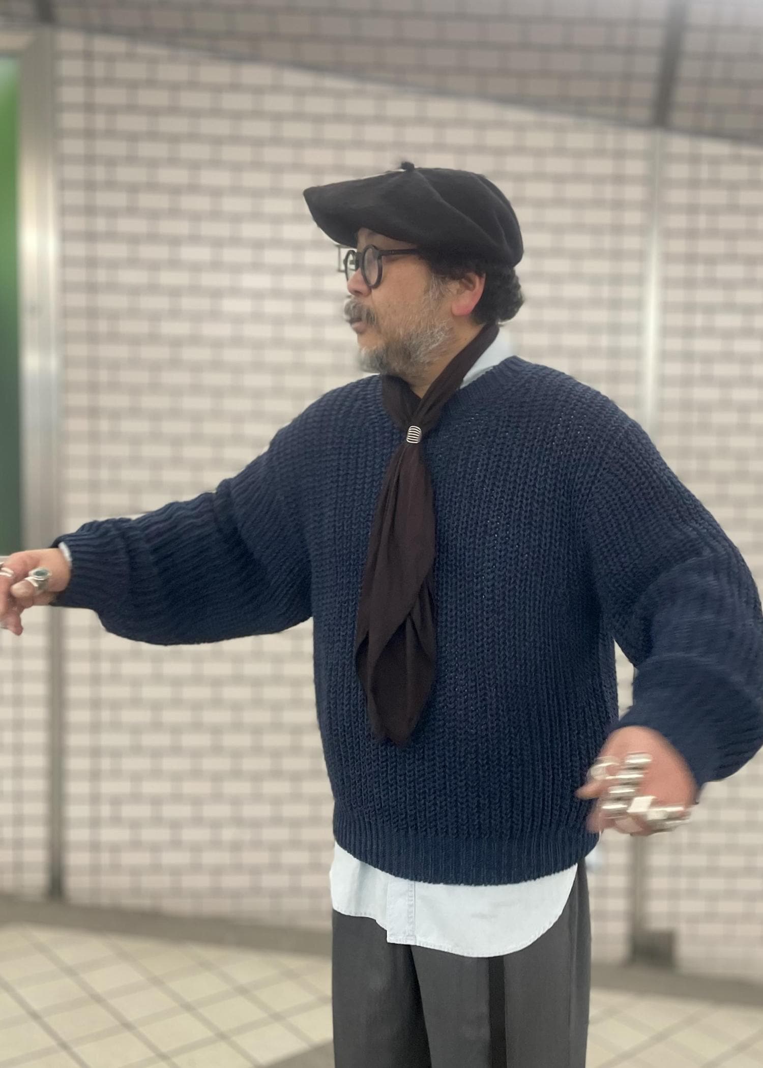 BATONERに別注し、糸の段階から丁寧に作り込んだコットンニット。
