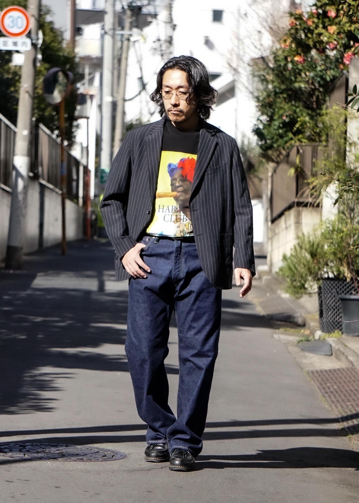 春先の軽いイメージを意識して、インパクトのあるT-shirtをインナーに、カジュアルに合わせました。