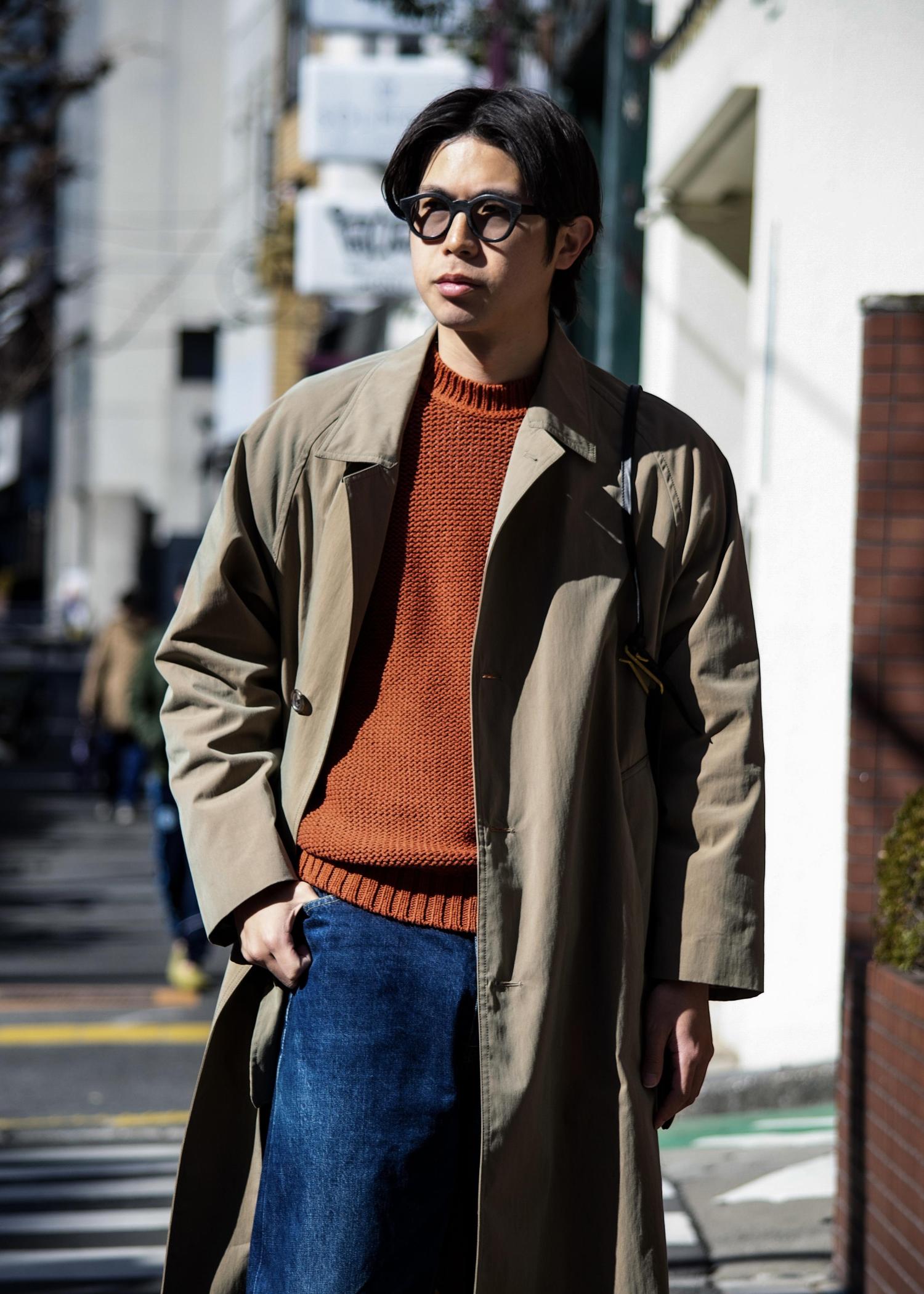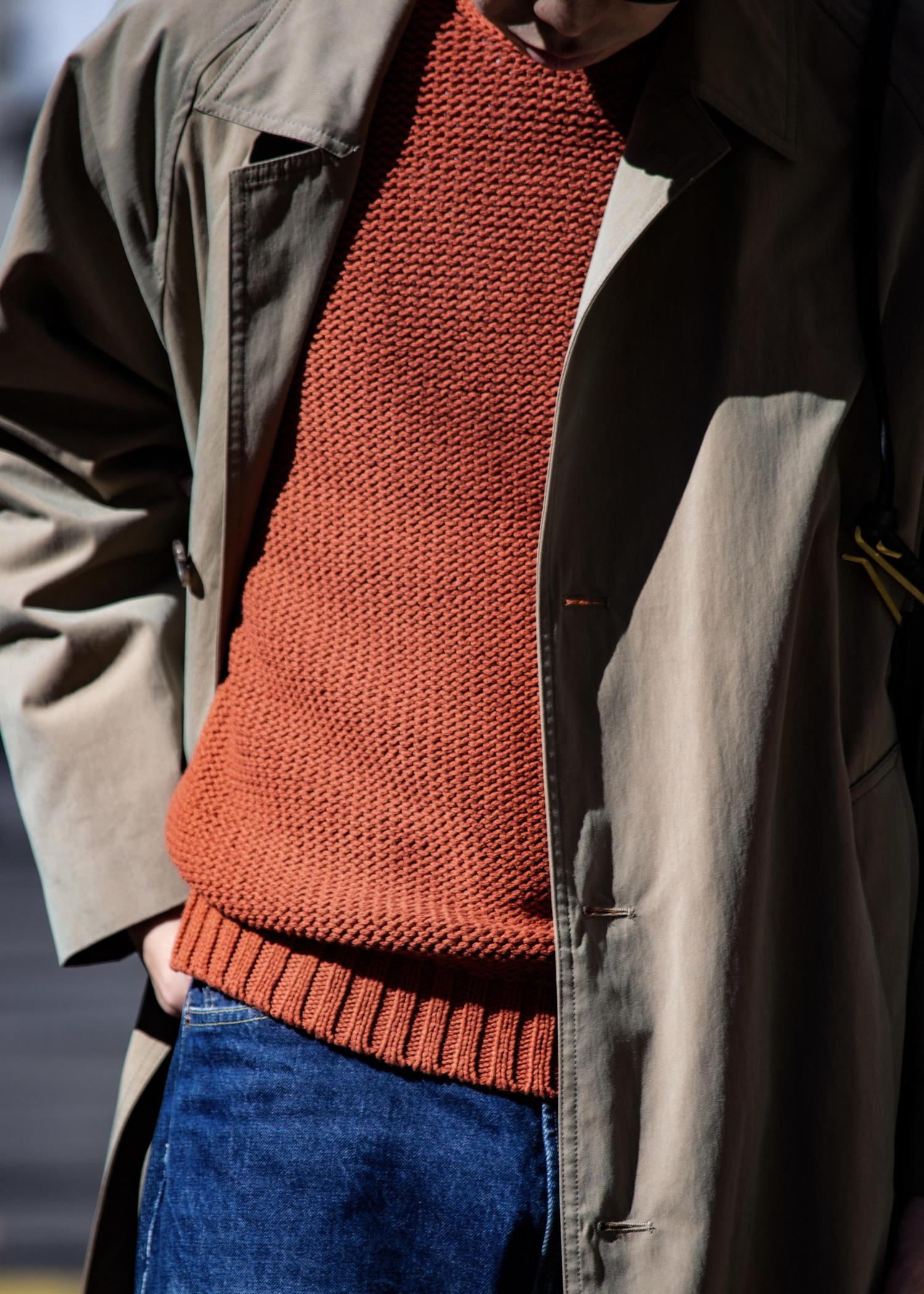 COTTON GABARDINE COAT & COTTON LOW GAUGE CREWNECK KNIT