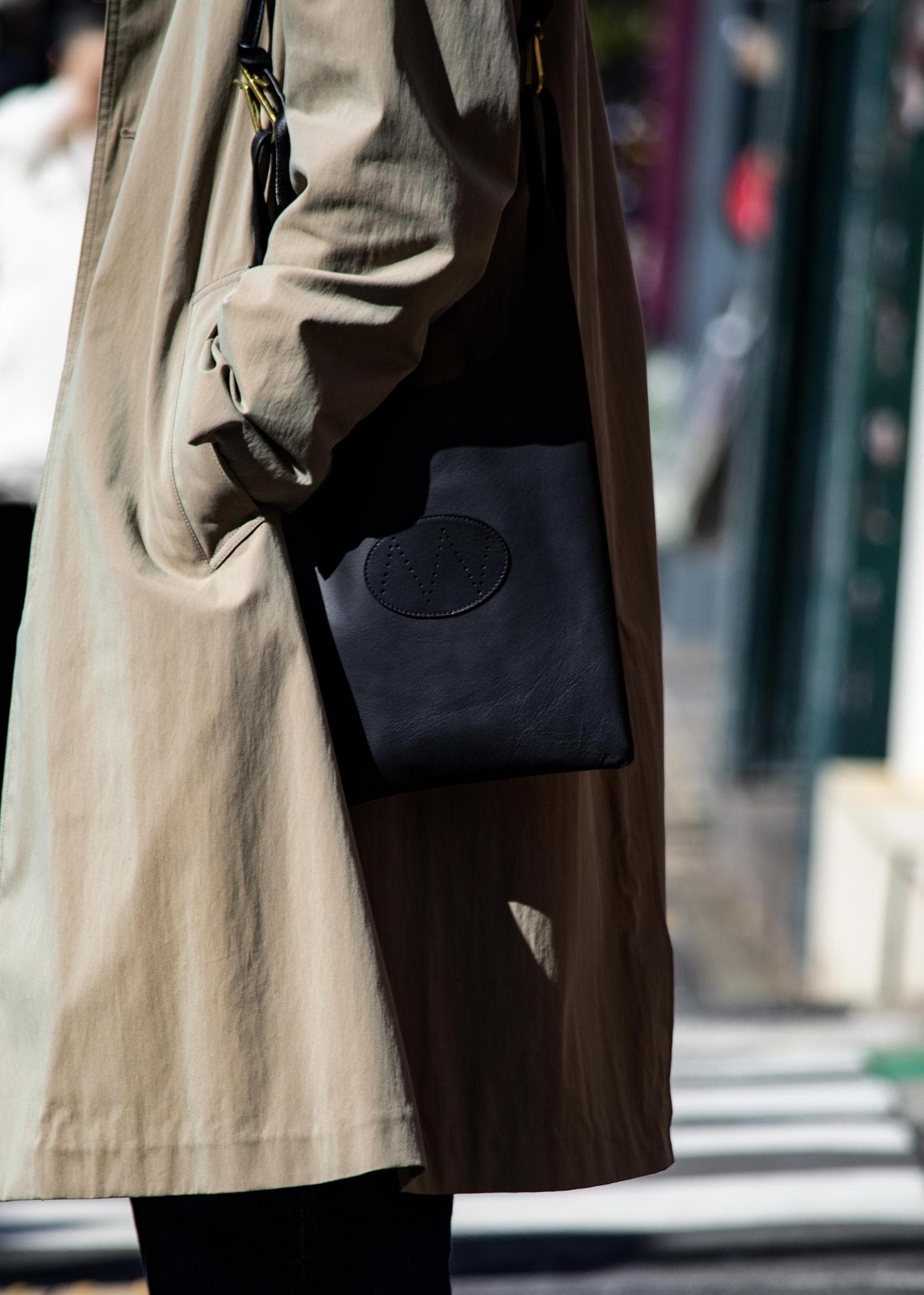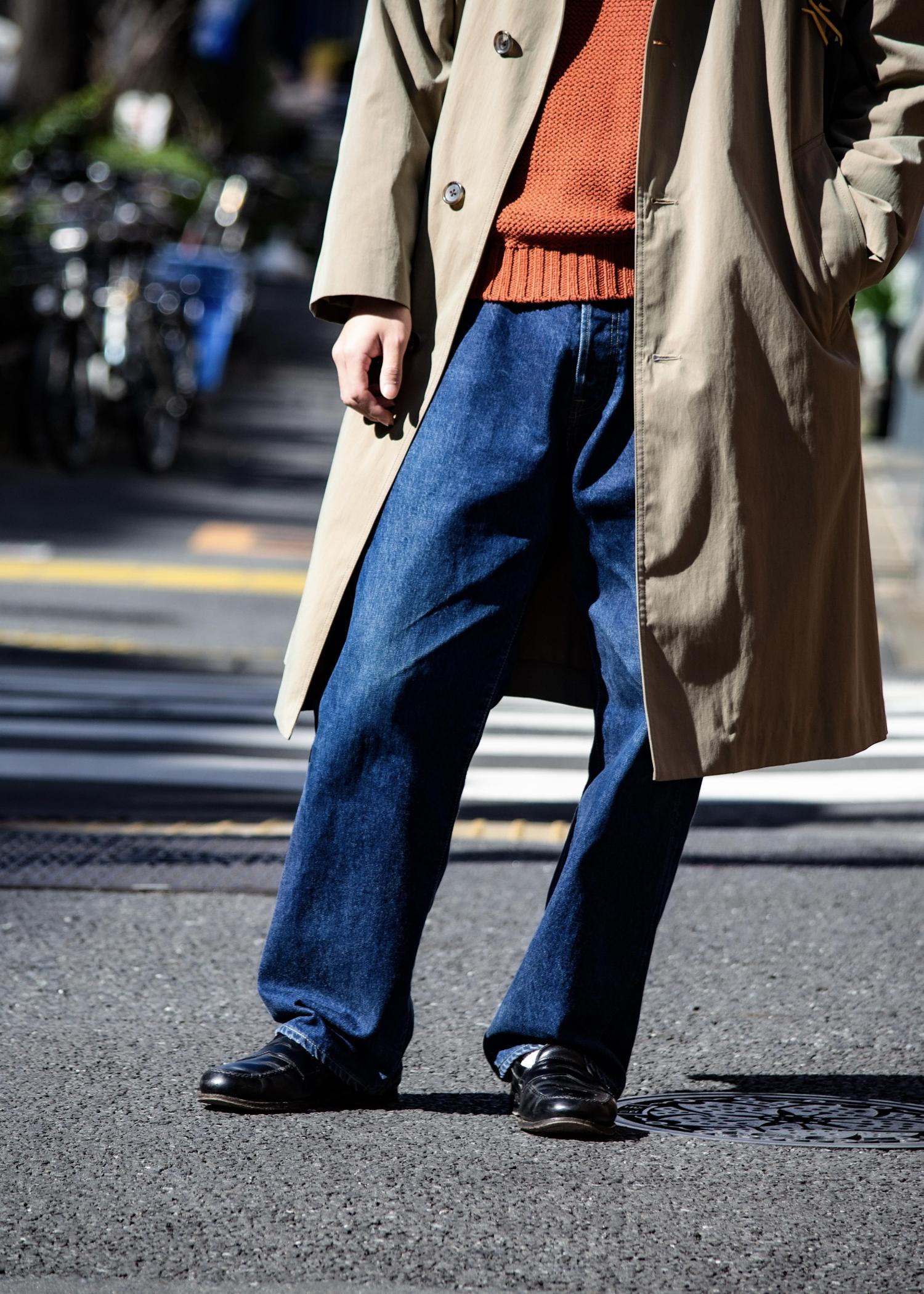 特殊な加工を施した、コットンナイロンのシャンブレー生地で、経糸にハリのあるのナイロンを使用しており、見た目よりも軽く、自然に美しいシルエットを保ちます。