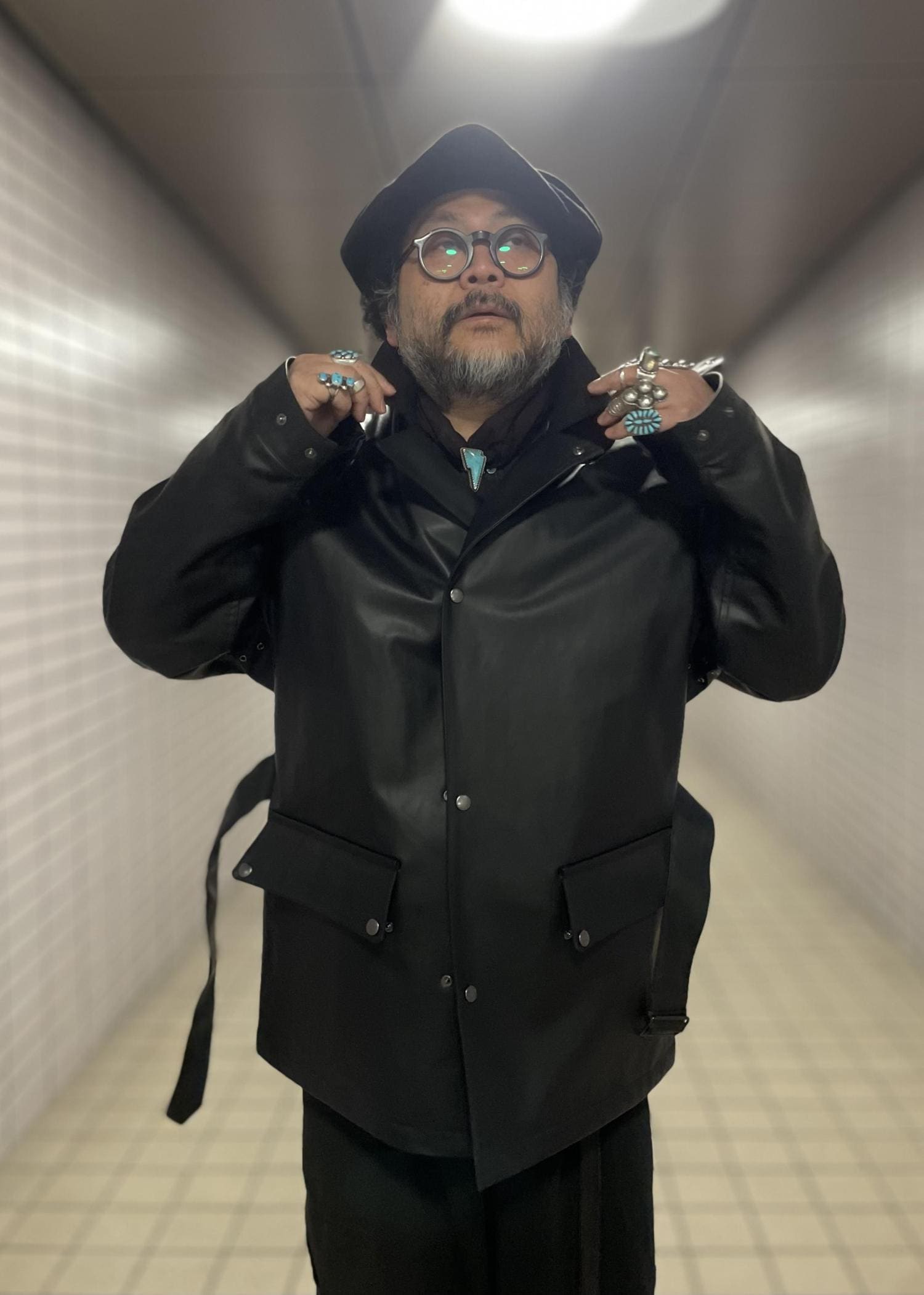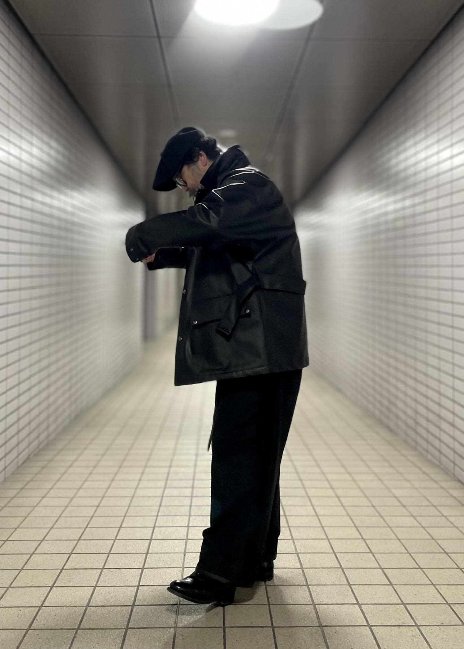 1940年代のラバー製モーターサイクルブルゾンをベースに、ヴィンテージの空気感を残しながら現代的に再構築。ゆとりのあるシルエットで動きやすく、クラシックと今のバランスがちょうどよい仕上がりです。ウエストベルトやネックストラップで表情を変えられるのも魅力。