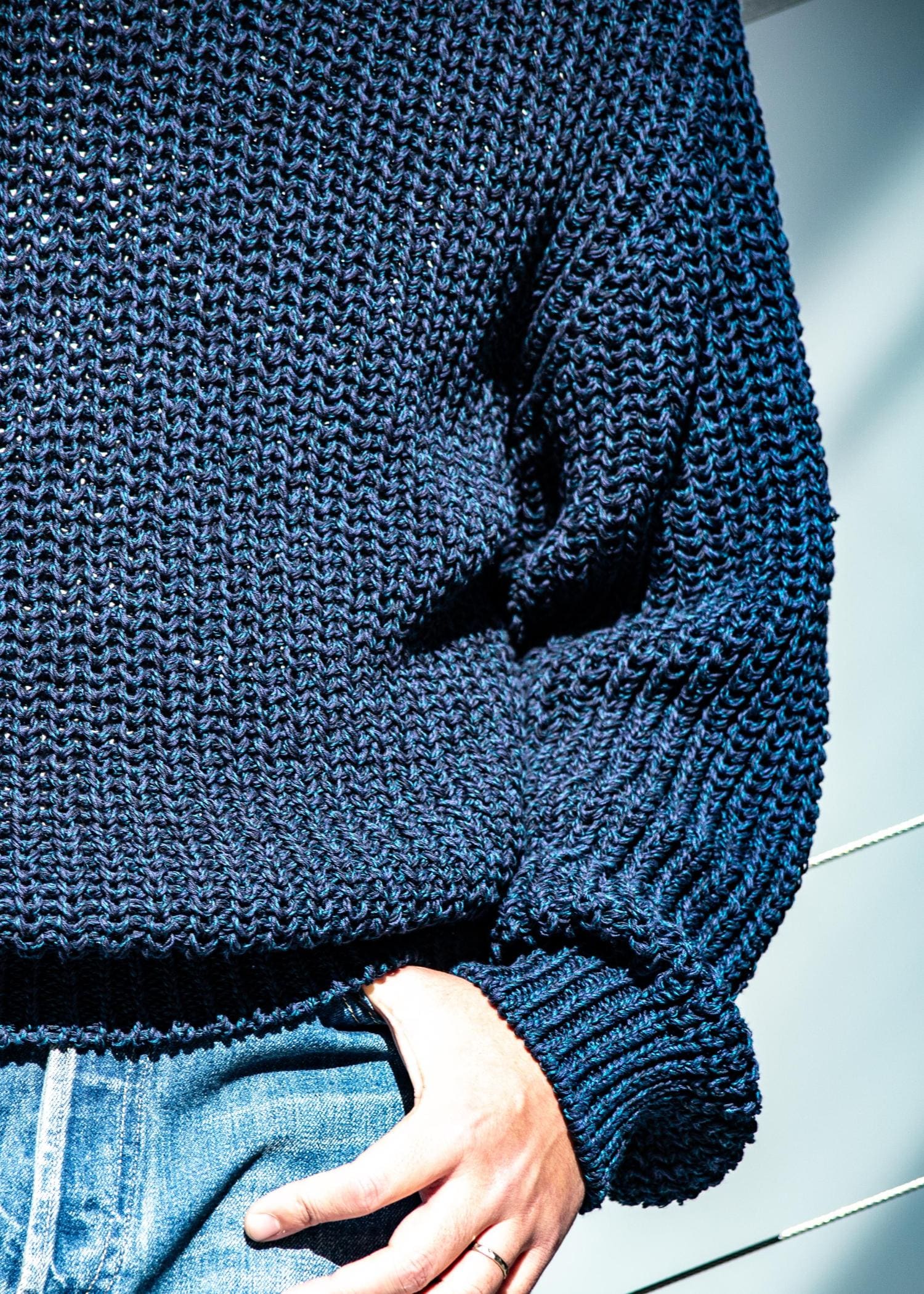 ざっくりと編みあげた春の陽気にふさわしいゴキゲンなニットに仕上がりました。
