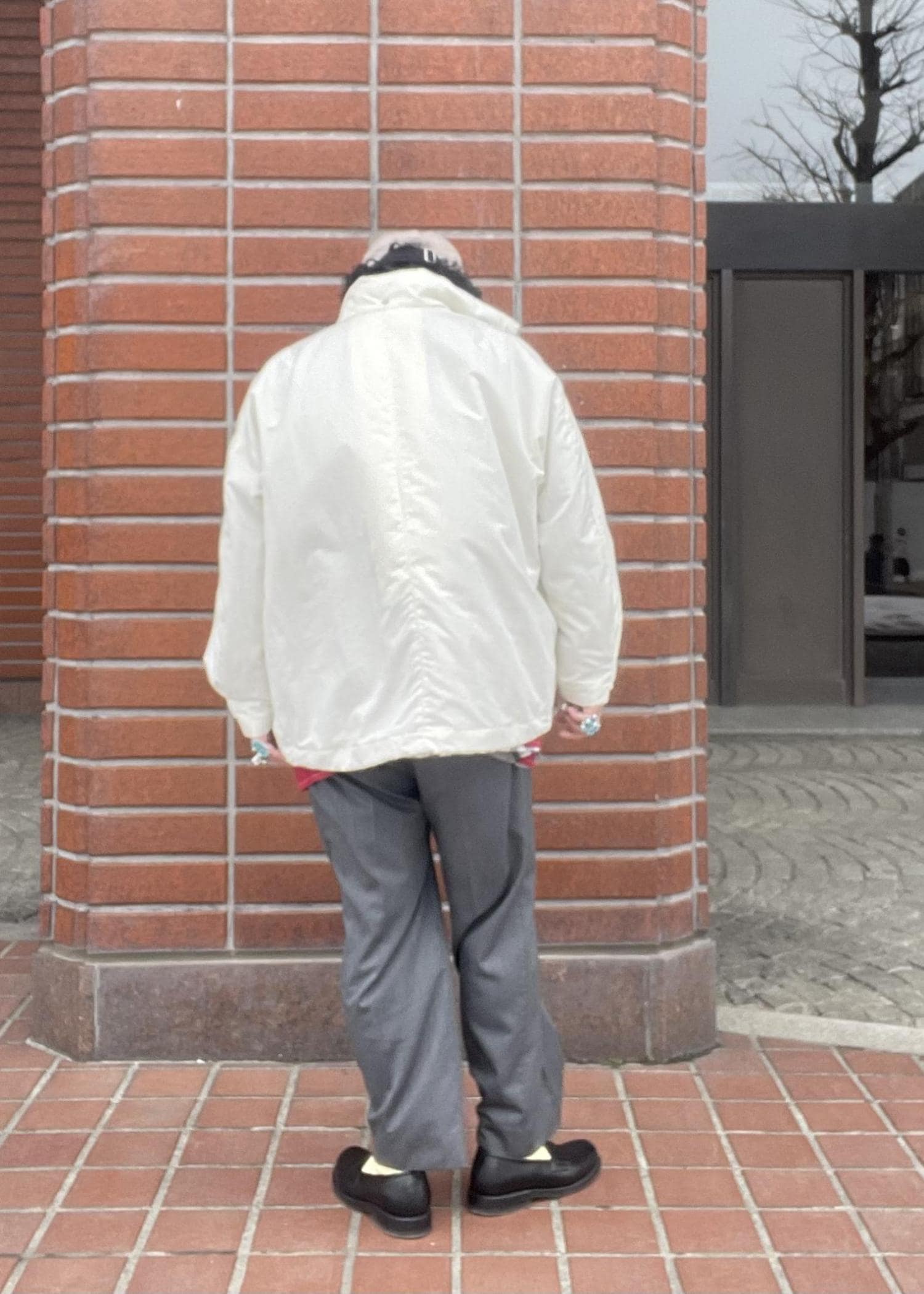 薄く張りがある為ジャケットやカバーオールの上のアウターから