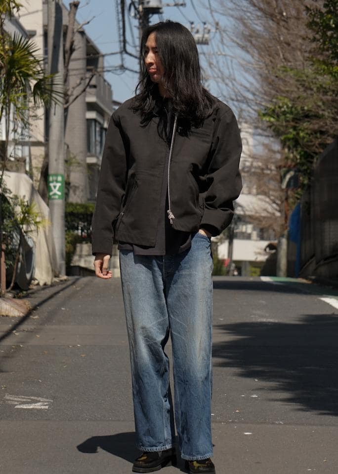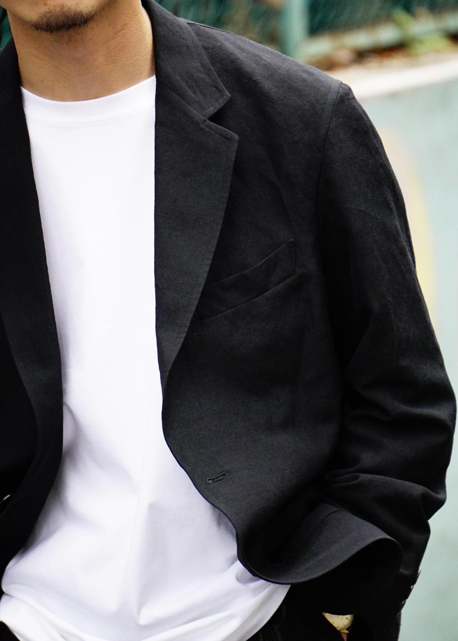 ・かしこまった感じではなく、インナーにカジュアルなアイテムを合わせてもはまるシルエットに仕上げています。