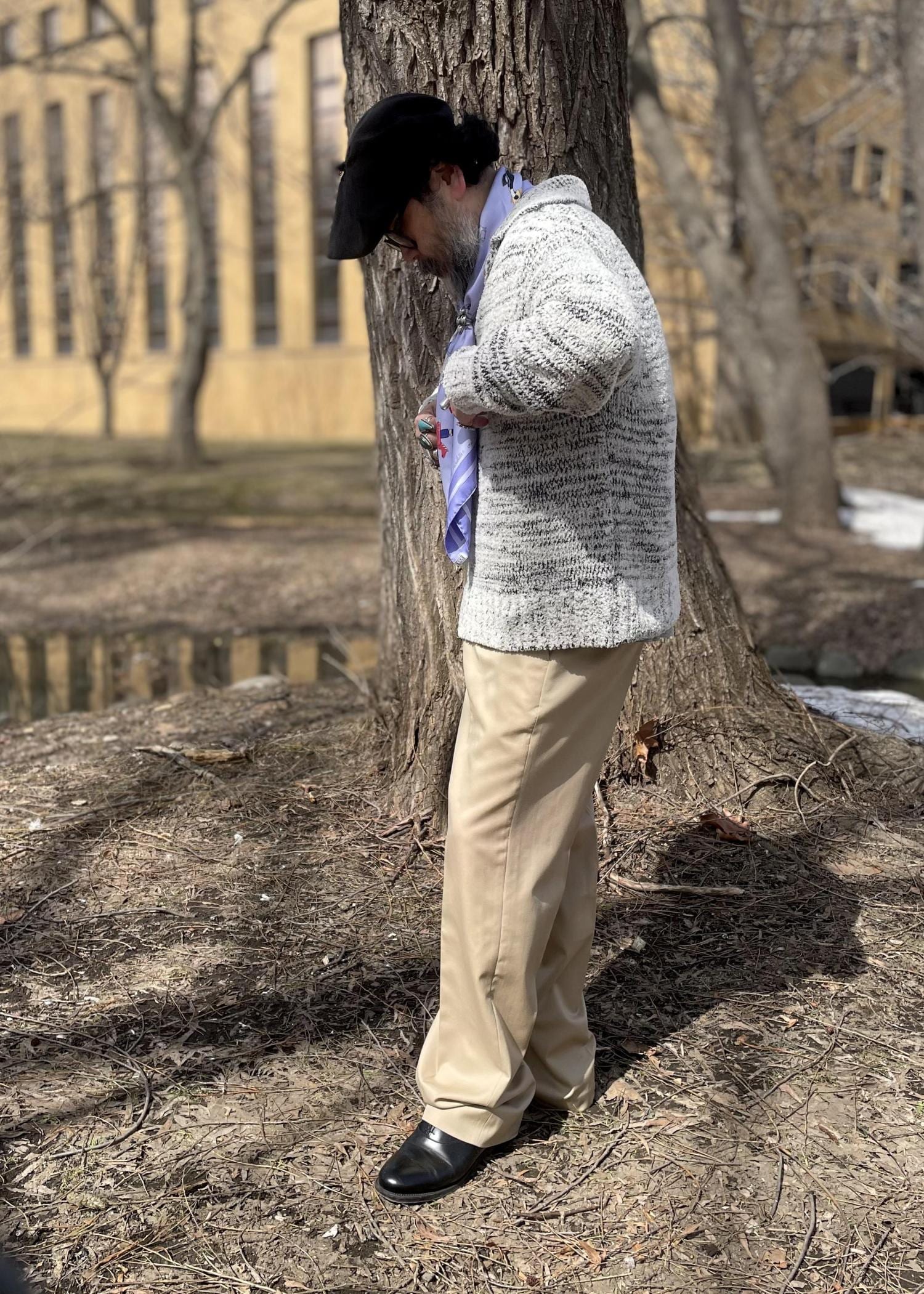 ドレッシーに履くのもよいですが、カジュアルな合わせが楽しいパンツだと思います。