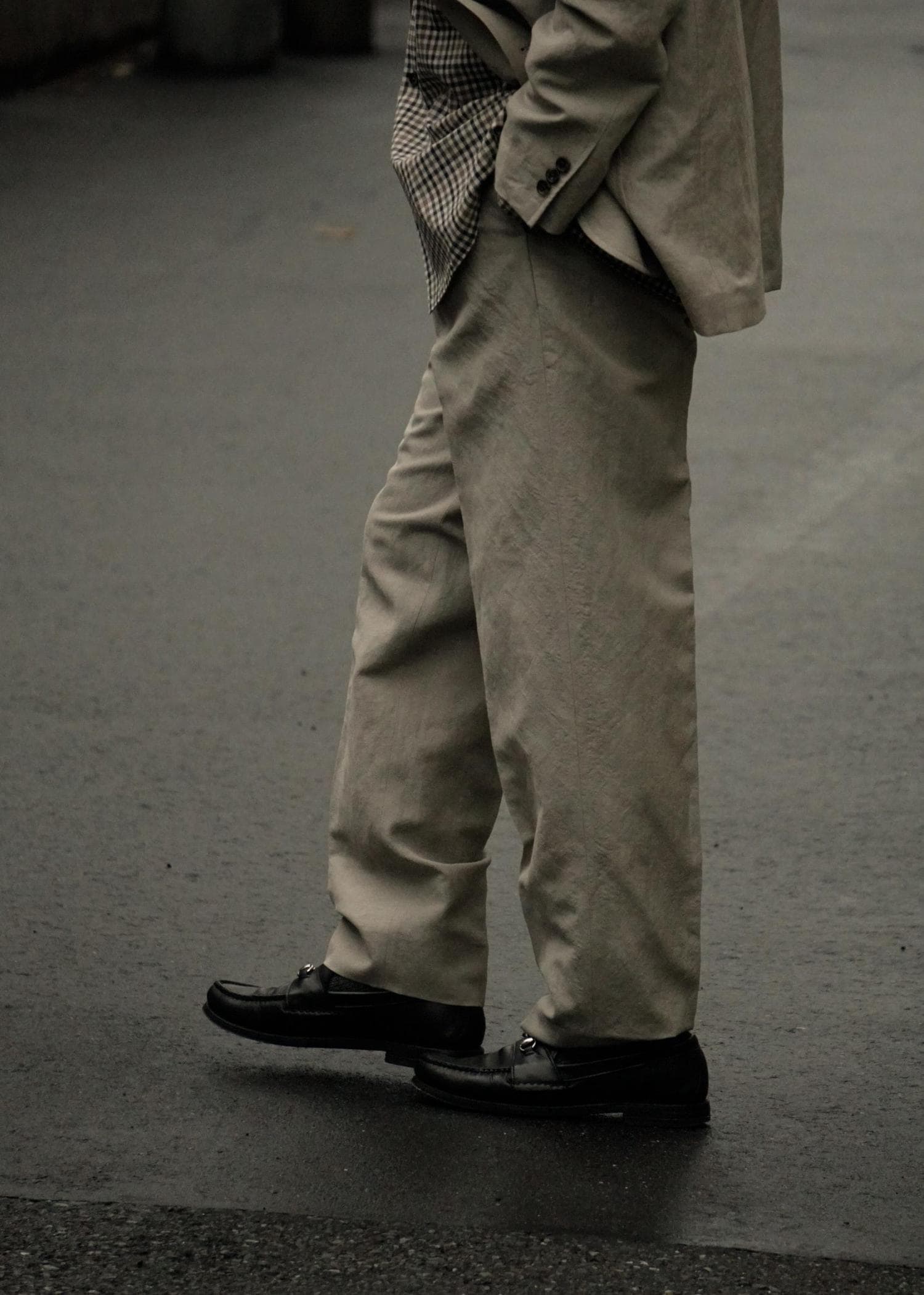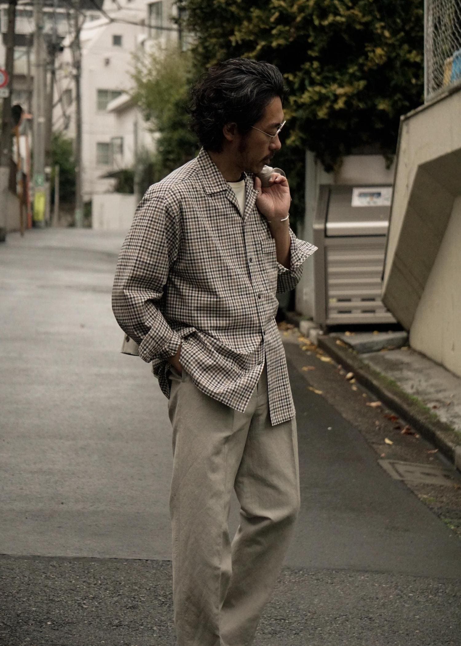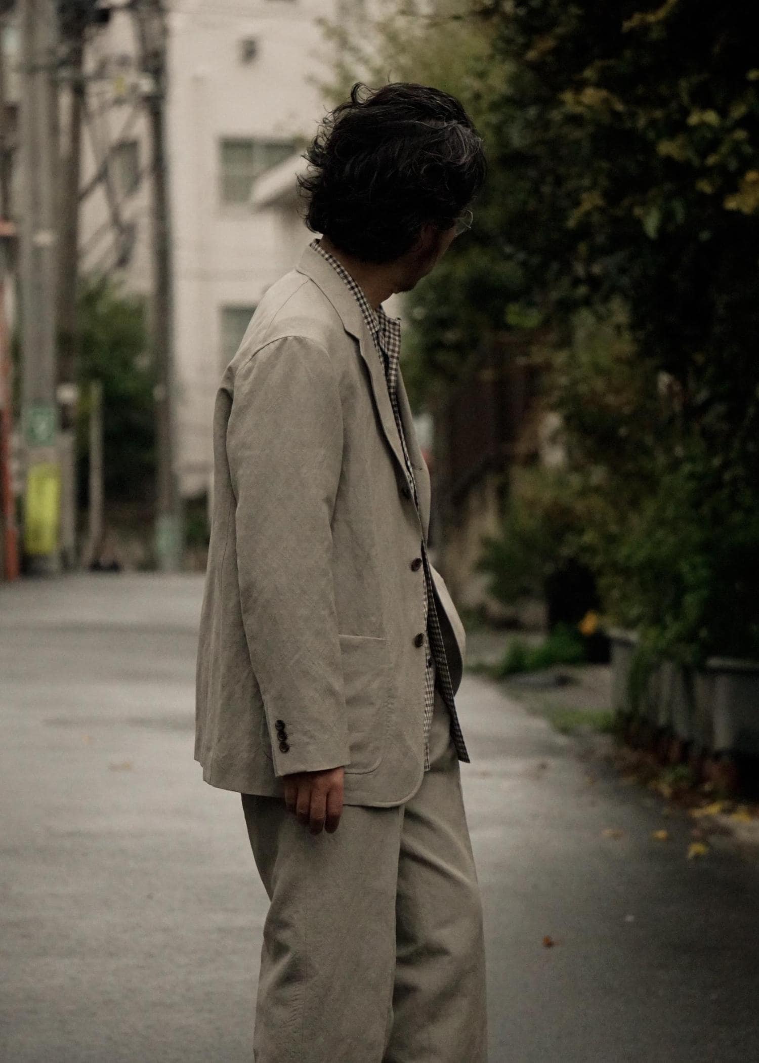 WILD LIFE TAILORのウールリネン素材のセットアップを用いたスタイリングです。