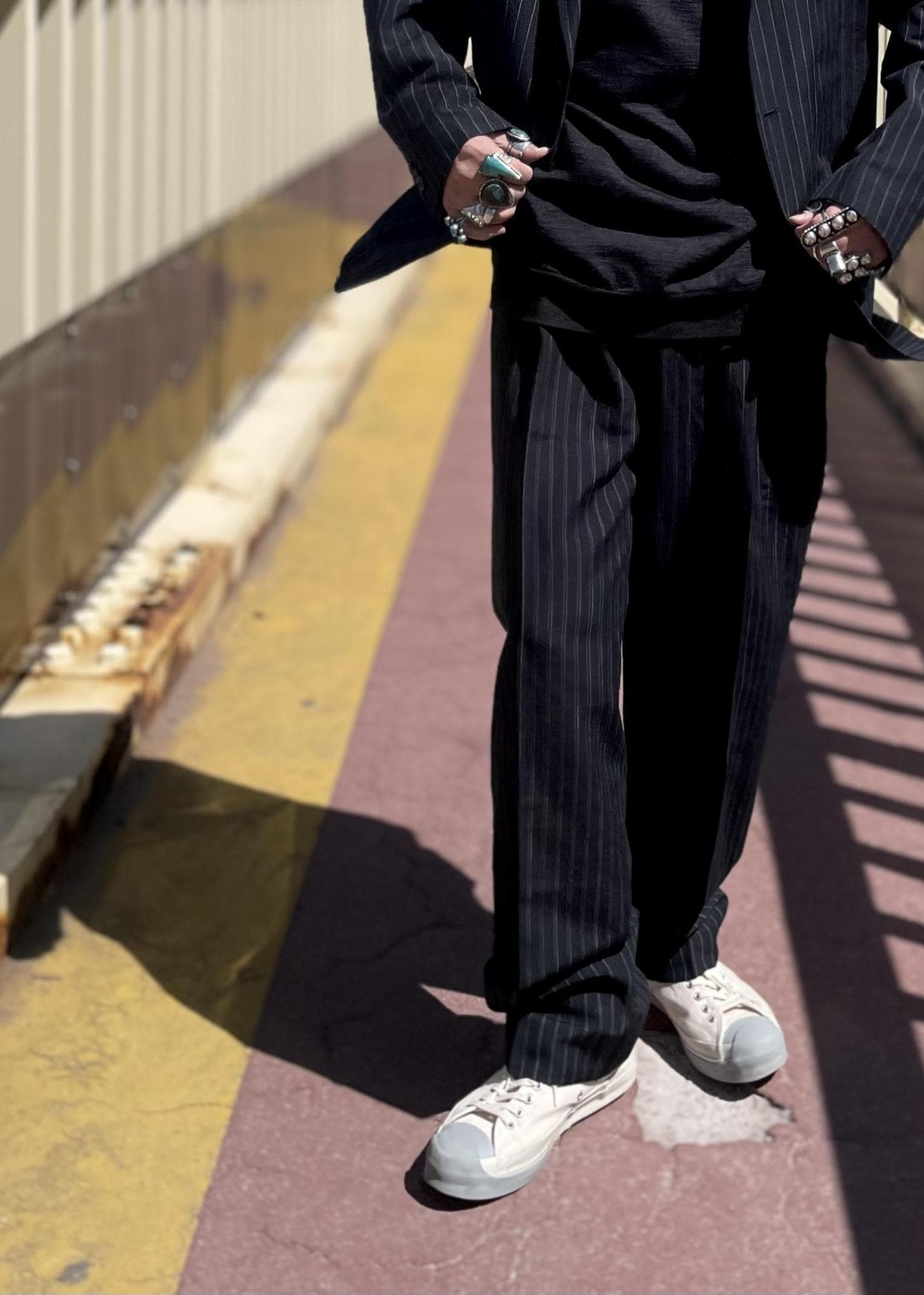 WILD LIFE TAILORWOOL LINEN TROUSERSネイビー系 / XL¥37,400レビューシルエットはゆったりしているもののウエストは決して大きすぎないので、ウエストサイズよりシルエットで選んで頂きたい一本。。