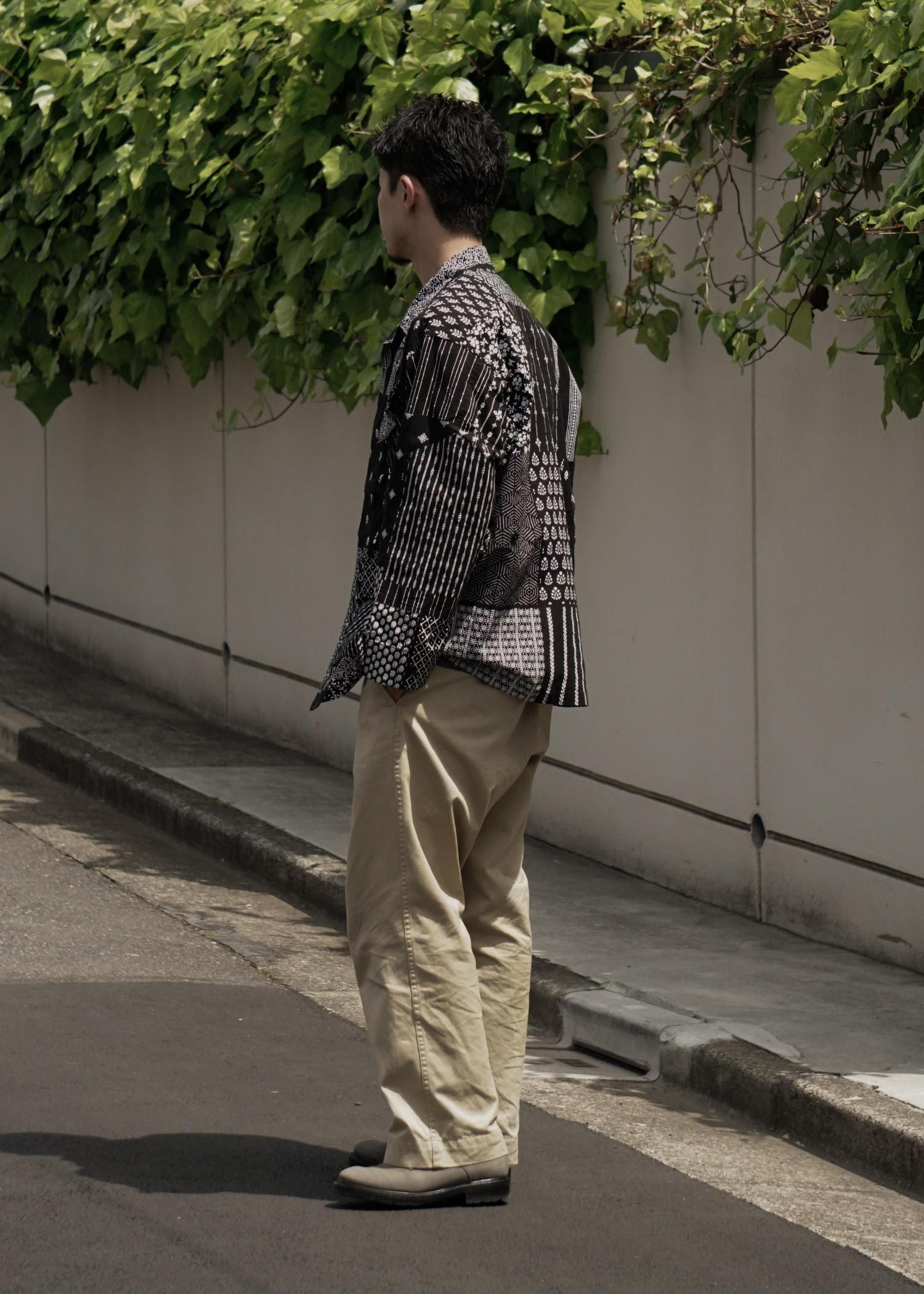 今回の別注は、Engineered Garmentsらしいバンダナ柄をクレイジーパターンで再構築し、一見すると強い柄も、ミリタリーの文脈に乗せると不思議と馴染む一着に。